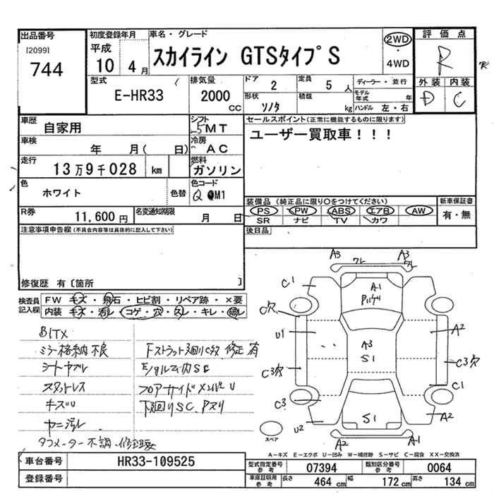 | GT | GF-HR34 | RB20DE | FR | 4AT | 1998cc | 155ps(114kW)/6400rpm | AИ-95 | 2 344 000 | |