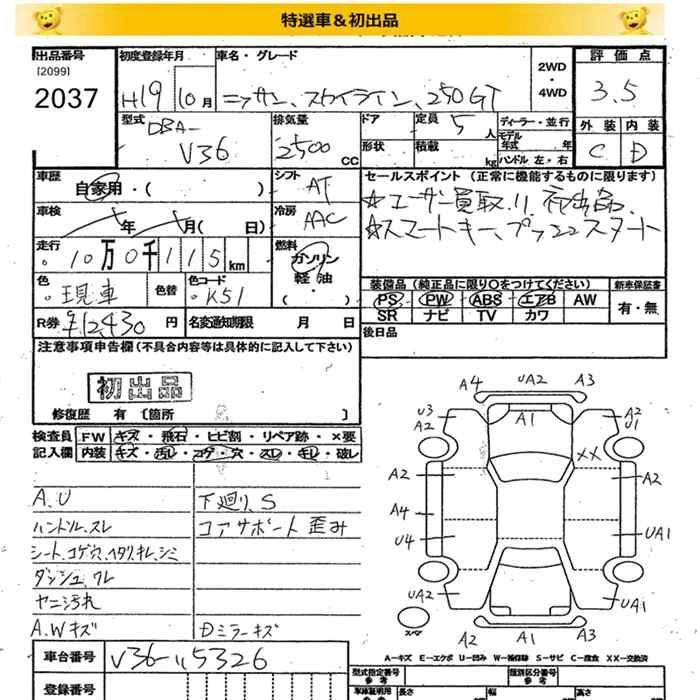 | 350GT TYPE SP | DBA-PV36 | VQ35HR | FR | 5AT | 3498cc | 315ps(232kW)/6800rpm | AИ-95 | 3 801 000 | |