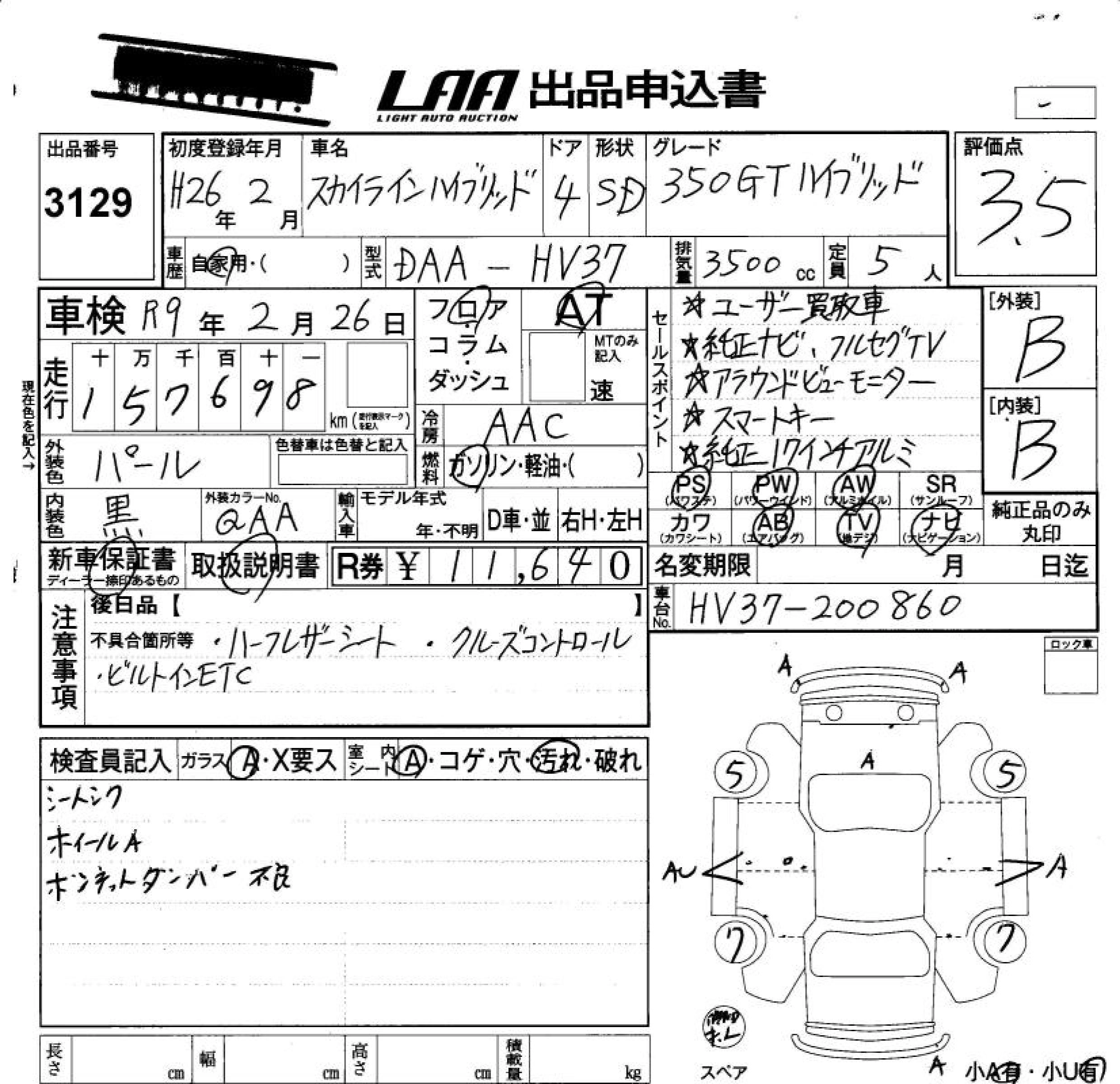 | 200GT-T | DBA-YV37 | 274A | FR | 7AT | 1991cc | 211ps(155kW)/5500rpm | AИ-95 | 3 834 000 |