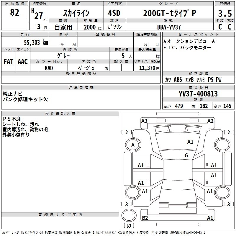 | 200GT-T TYPE P COOL EXCLUSIVE | DBA-YV37 | 274A | FR | 7AT | 1991cc | 211ps(155kW)/5500rpm | AИ-95 | 4 626 720 | |