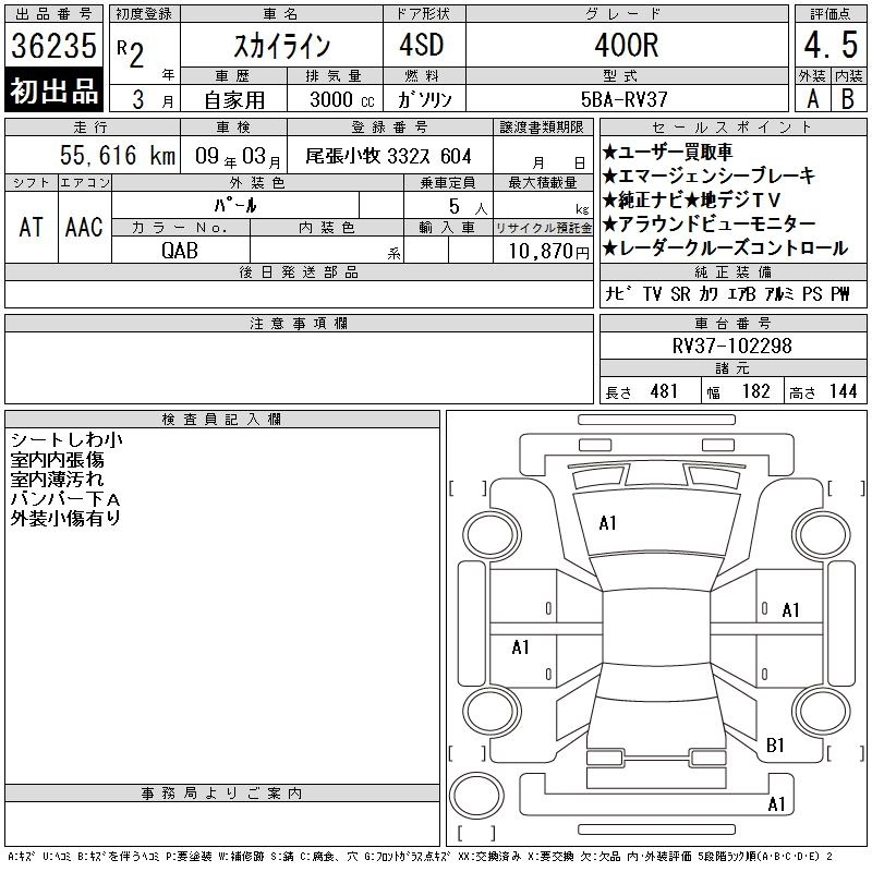 Статус продан Лот 36235 Аукцион CAA Chubu Дата аукциона 25.03.2026