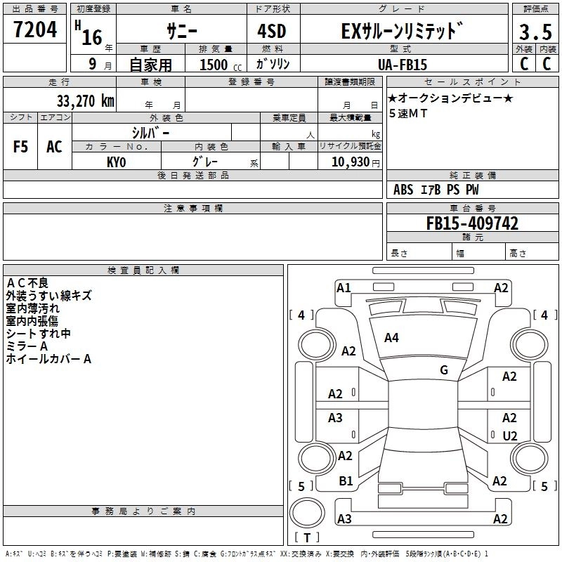 | EX SALOON LIMITED | UA-FB15 | QG15DE(NEO) | FF | 4AT | 1497cc | 109ps(80kW)/6000rpm | AИ-92 | 1 410 150 | |
