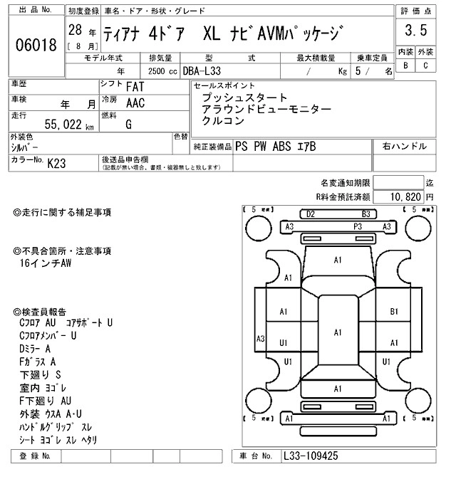 | XL NAVI AVM PACKAGE | DBA-L33 | QR25DE | FF | CVT | 2488cc | 173ps(127kW)/6000rpm | AИ-92 | 3 213 000 | |