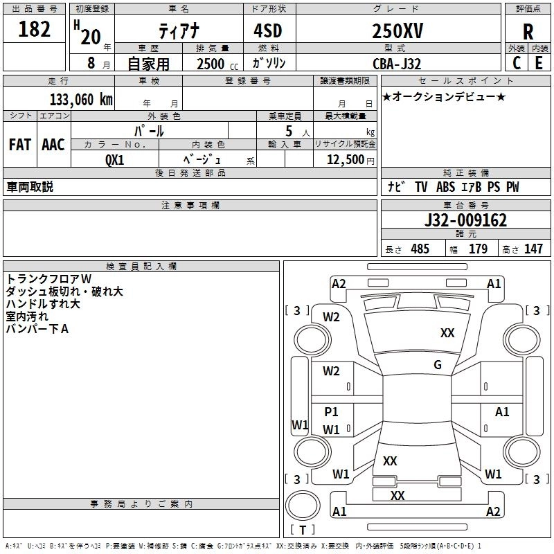 | 250XL | CBA-J32 | VQ25DE | FF | CVT | 2495cc | 185ps(136kW)/6000rpm | AИ-92 | 2 751 000 | |