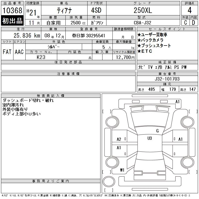 | 250XL FOUR PREMIUM SELECTION LEATHER SEAT PACKAGE | CBA-TNJ32 | QR25DE | Full-time 4WD | CVT | 2488cc | 167ps(123kW)/5600rpm | AИ-92 | 3 517 500 | |