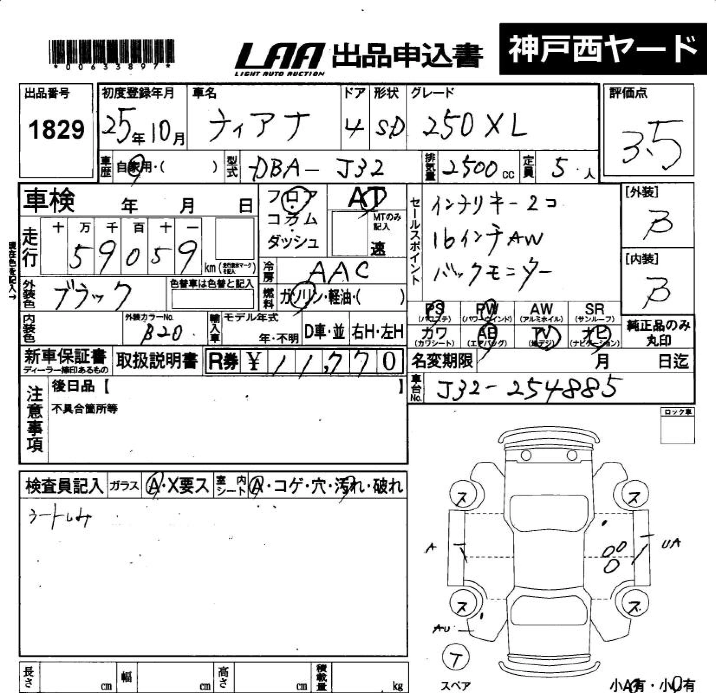 Статус выставлен на аукцион Лот 1829 Аукцион LAA Okayama Дата аукциона 20.03.2026