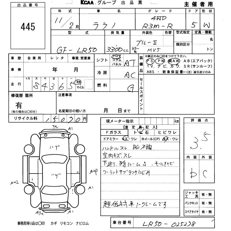 | WIDE BODY R3M-R | GF-LR50 | VG33E | Full-time 4WD | 4AT | 3274cc | 170ps(125kW)/4800rpm | AИ-92 | 2 958 000 | |