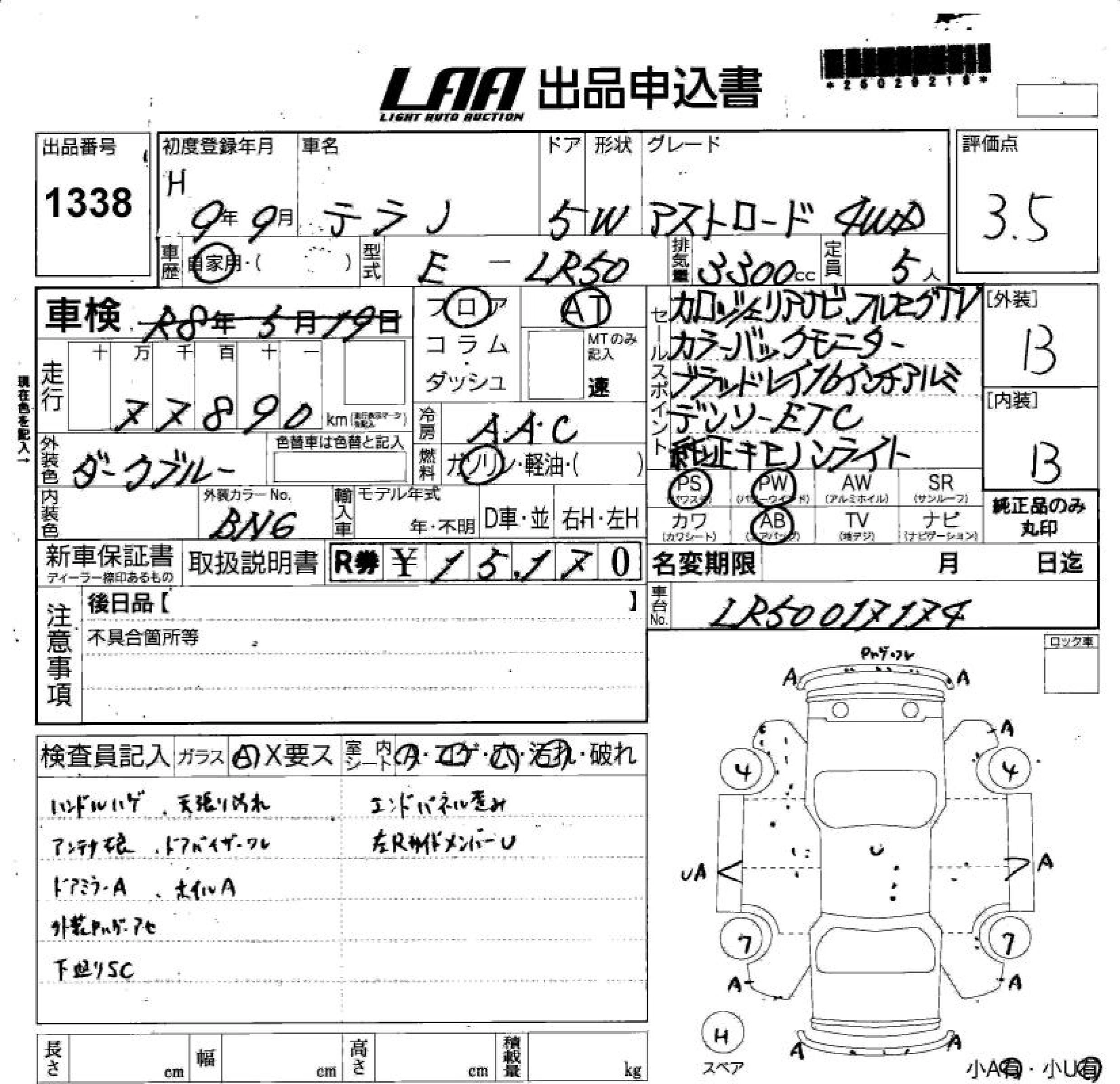 | WIDE BODY R3M-R LIMITED PACK | E-LR50 | VG33E | Full-time 4WD | 4AT | 3274cc | 170ps(125kW)/4800rpm | AИ-92 | 3 033 000 | |