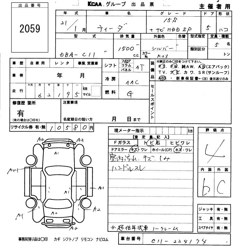 | AXIS PERFORMANCE SPEC | DBA-C11 | HR15DE | FF | CVT | 1498cc | 109ps(80kW)/6000rpm | AИ-92 | 2 063 250 | |