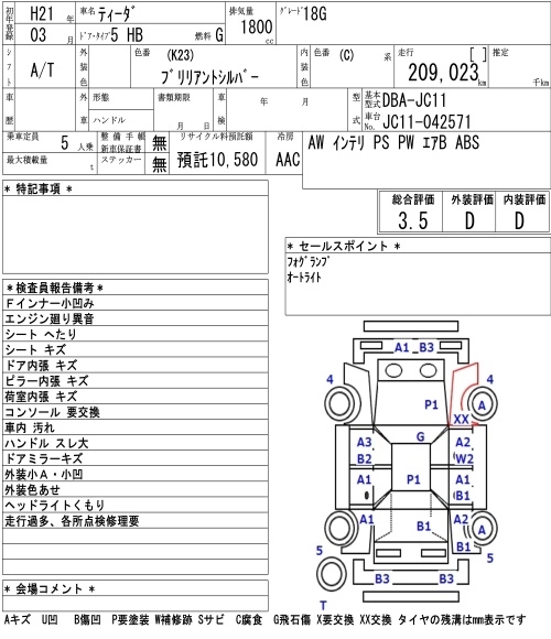 | 18G | DBA-JC11 | MR18DE | FF | 6MT | 1797cc | 128ps(94kW)/5200rpm | AИ-92 | 1 995 000 | |