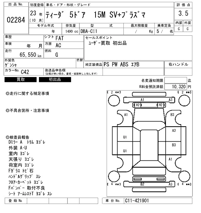 AXIS PERFORMANCE SPEC(WHITE LEATHER) SV+PLASMA DBA-C11 HR15DE FF CVT 1498cc 109ps(80kW)/6000rpm AИ-92 2 004 450