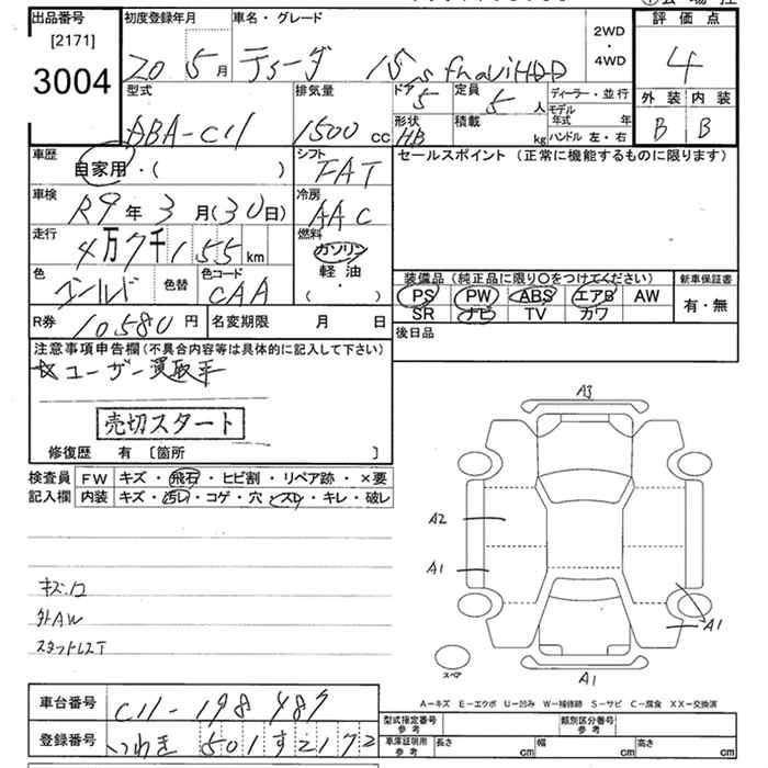 | 15S PLUS NAVI HDD | DBA-C11 | HR15DE | FF | 4AT | 1498cc | 109ps(80kW)/6000rpm | AИ-92 | 1 585 500 | |