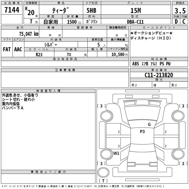 | 15S PLUS NAVI HDD | DBA-C11 | HR15DE | FF | 4AT | 1498cc | 109ps(80kW)/6000rpm | AИ-92 | 1 585 500 | |