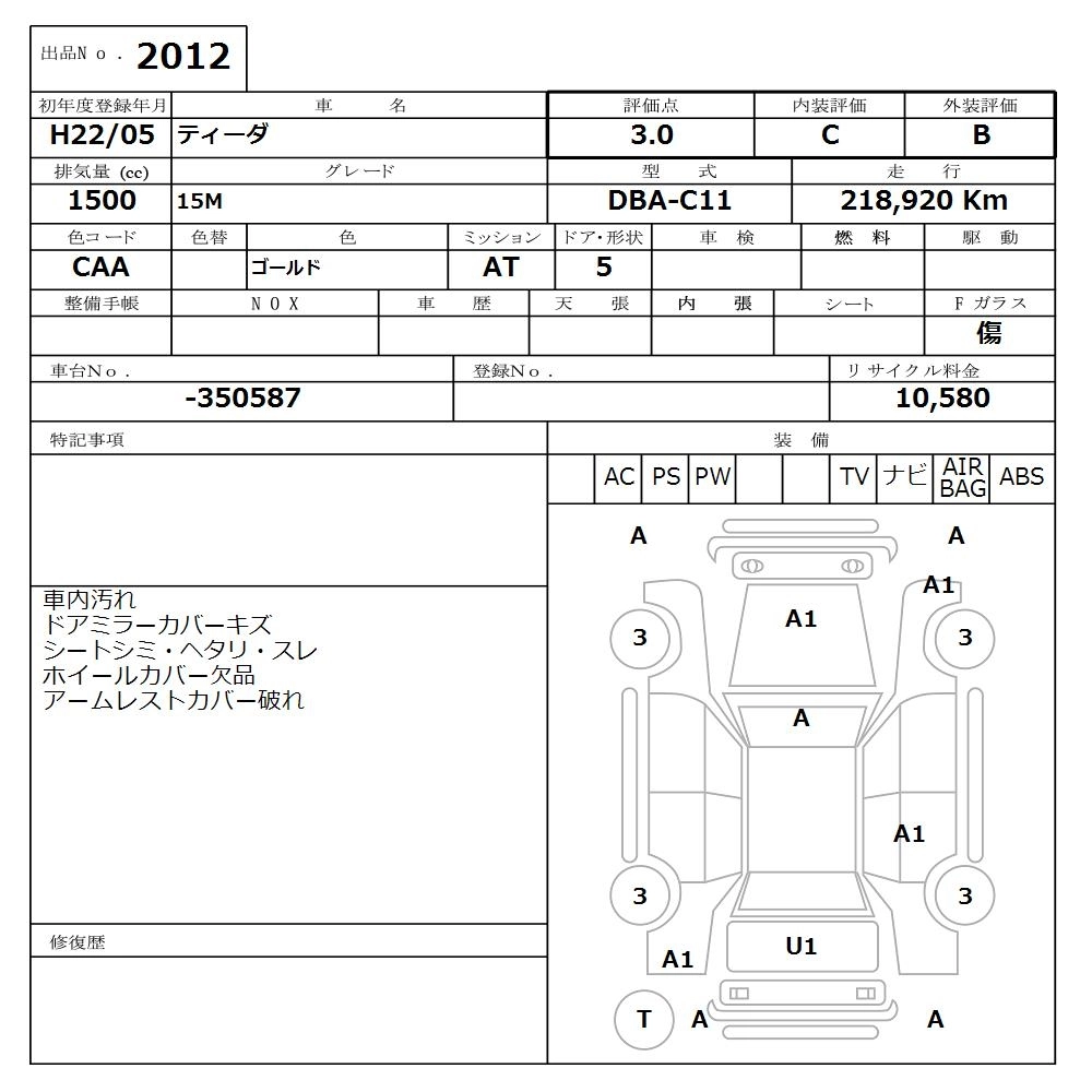 | AXIS WHITE LEATHER VERSION | DBA-C11 | HR15DE | FF | CVT | 1498cc | 109ps(80kW)/6000rpm | AИ-92 | 1 999 200 | |