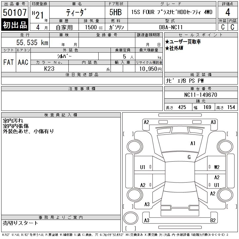 | AXIS PLUS NAVI HDD | DBA-NC11 | HR15DE | Full-time 4WD | 4AT | 1498cc | 109ps(80kW)/6000rpm | AИ-92 | 2 362 500 | |
