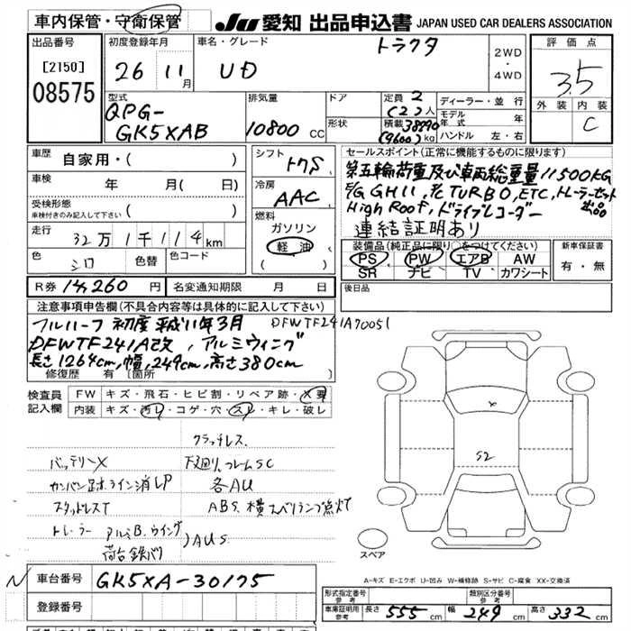 Статус выставлен на аукцион Лот 8575 Аукцион JU Aichi Дата аукциона 19.03.2026