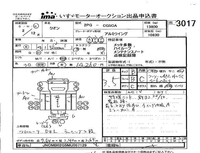 Статус выставлен на аукцион Лот 3017 Аукцион Isuzu Kobe Дата аукциона 20.03.2026