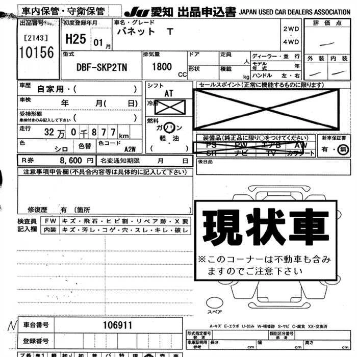 Статус выставлен на аукцион Лот 10156 Аукцион JU Aichi Дата аукциона 29.01.2026