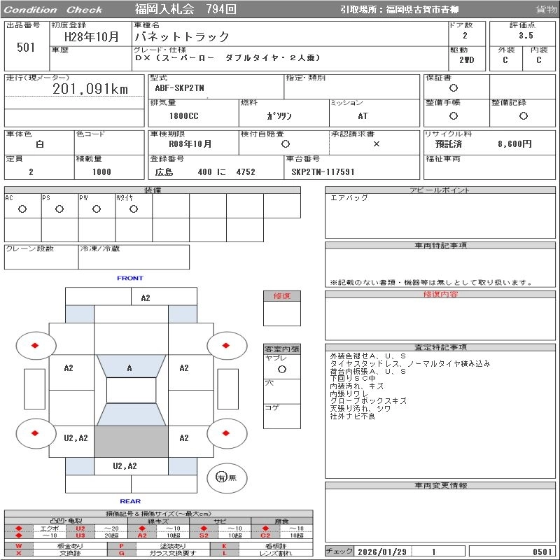 NISSAN VANETTE TRUCK 2016 г., лот № 501