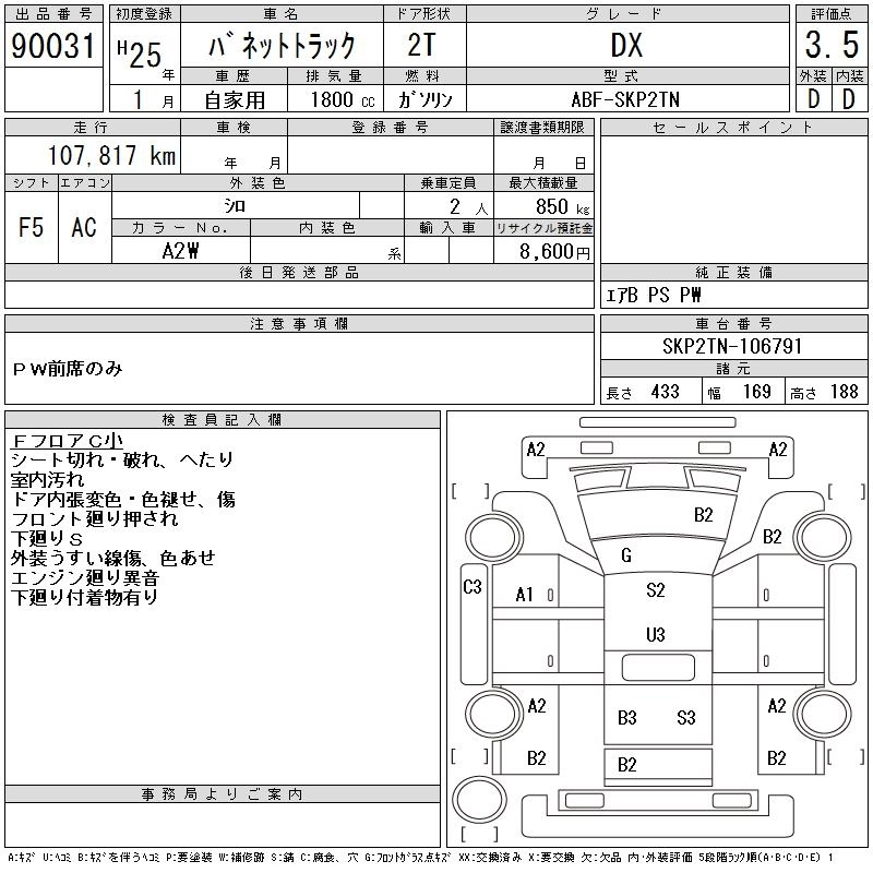 NISSAN VANETTE TRUCK 2013 г., лот № 90031