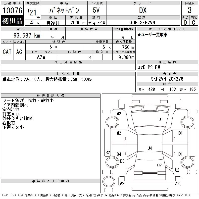 NISSAN VANETTE VAN 2009 г., лот № 10076