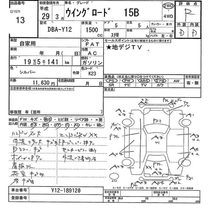 NISSAN WINGROAD 2017 г., лот № 13