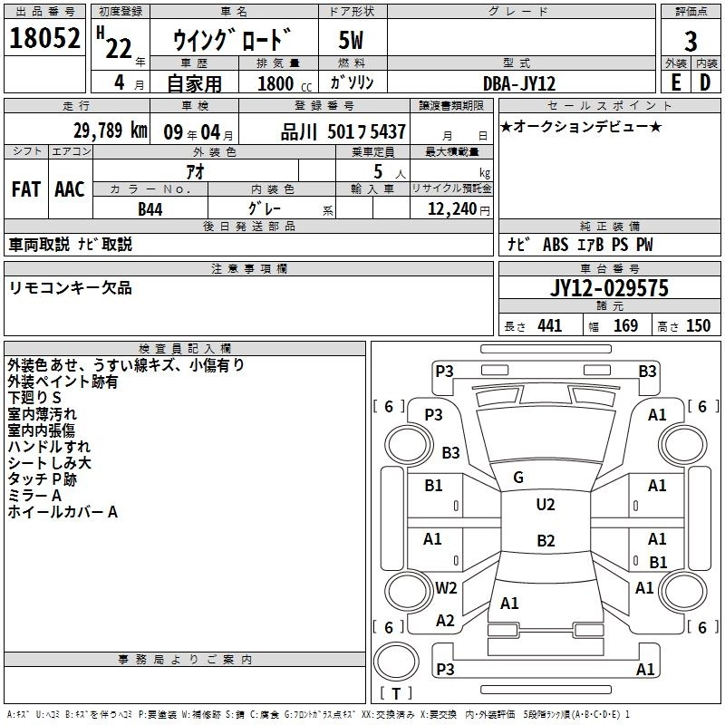 | AXIS | DBA-Y12 | HR15DE | FF | CVT | 1498cc | 109ps(80kW)/6000rpm | AИ-92 | 2 026 500 | |