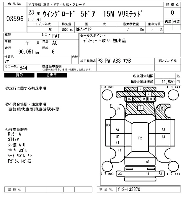 NISSAN WINGROAD 2011 г., лот № 3596