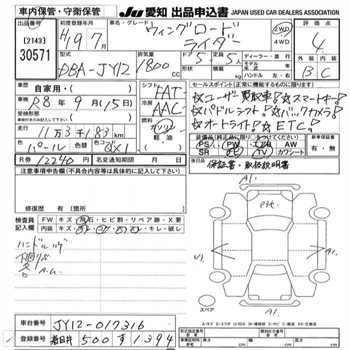 Статус выставлен на аукцион Лот 30571 Аукцион JU Aichi Дата аукциона 29.01.2026