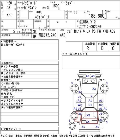 | RIDER | DBA-Y12 | HR15DE | FF | CVT | 1498cc | 109ps(80kW)/6000rpm | AИ-92 | 2 063 250 | |