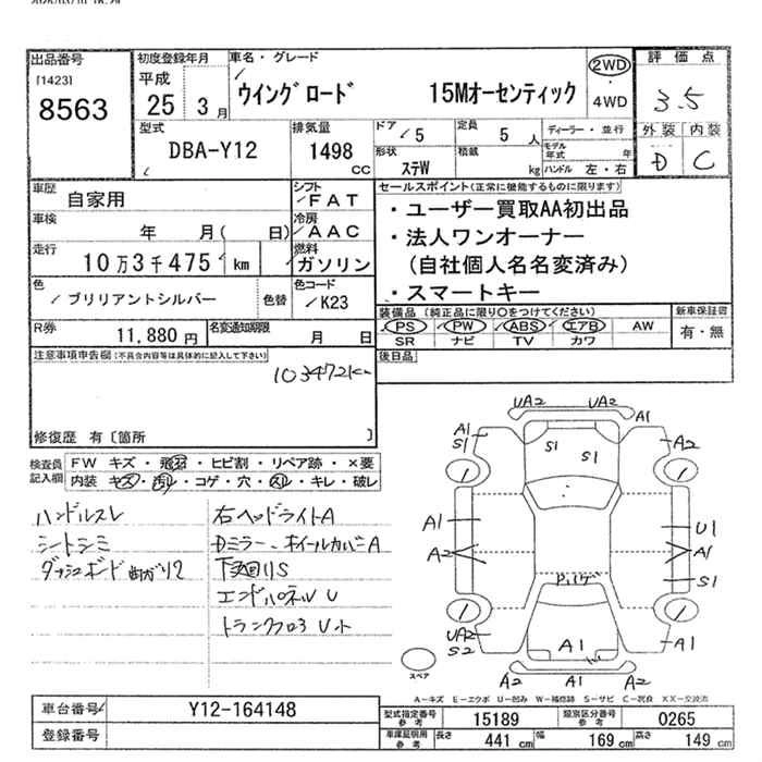 Год выпуска2013 Пробег 103 000 км КузовDBA-Y12 Комплектация15M AUTHENTIC 2WD
