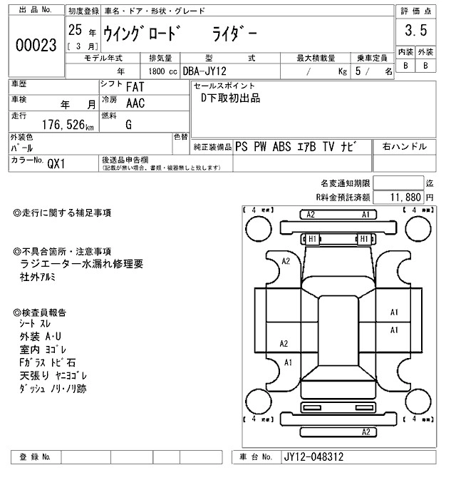 NISSAN WINGROAD 2013 г., лот № 23