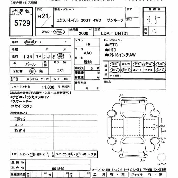 | AXIS PERFORMANCE SPEC | CBA-TNT31 | QR25DE | Full-time 4WD | CVT | 2488cc | 170ps(125kW)/6000rpm | AИ-92 | 3 139 500 | |