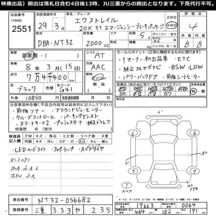 | 20X | DBA-NT32 | MR20DD | Full-time 4WD | CVT | 1997cc | 147ps(108kW)/6000rpm | AИ-92 | 2 755 080 | |