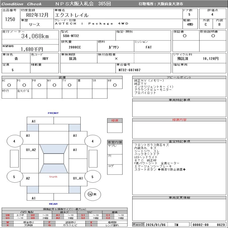 | AUTECH I PACKAGE | DBA-NT32 | MR20DD | Full-time 4WD | CVT | 1997cc | 147ps(108kW)/6000rpm | AИ-92 | 3 679 500 | |
