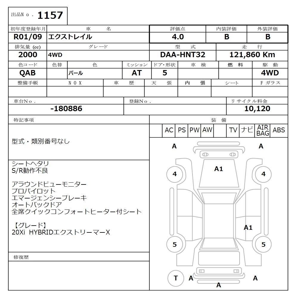 | 20S | DBA-NT32 | MR20DD | Full-time 4WD | CVT | 1997cc | 147ps(108kW)/6000rpm | AИ-92 | 2 482 700 | |