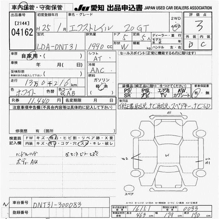 20GT X-TREMER X LDA-DNT31 M9R Full-time 4WD 6MT 1995cc 173ps(127kW)/3750rpm Дизельное топливо 3 281 250