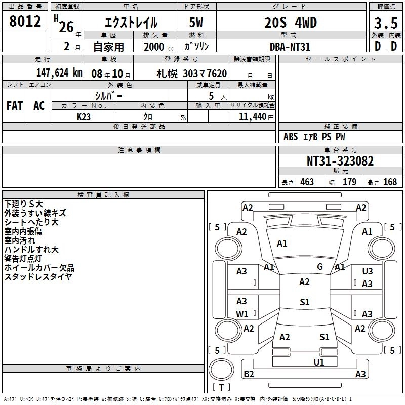 | 20X | DBA-NT32 | MR20DD | Full-time 4WD | CVT | 1997cc | 147ps(108kW)/6000rpm | AИ-92 | 2 519 640 | |