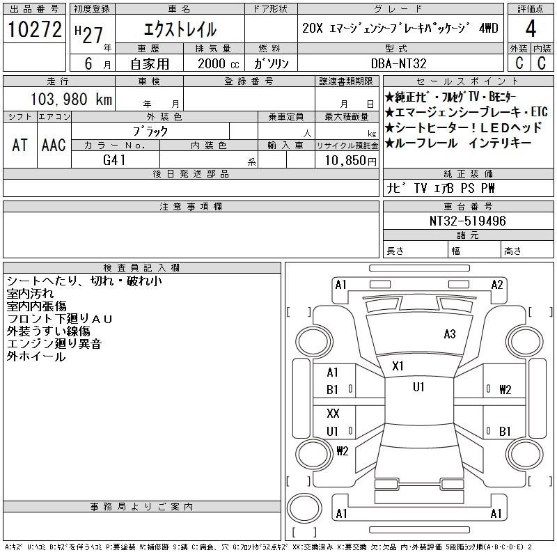 | 20X BLACK X-TREMER X EMERGENCY BRAKE PACKAGE | DBA-NT32 | MR20DD | Full-time 4WD | CVT | 1997cc | 147ps(108kW)/6000rpm | AИ-92 | 2 893 320 | |