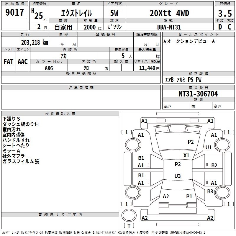 | 20STT | DBA-NT31 | MR20DE | Full-time 4WD | CVT | 1997cc | 137ps(101kW)/5200rpm | AИ-92 | 2 264 850 | |