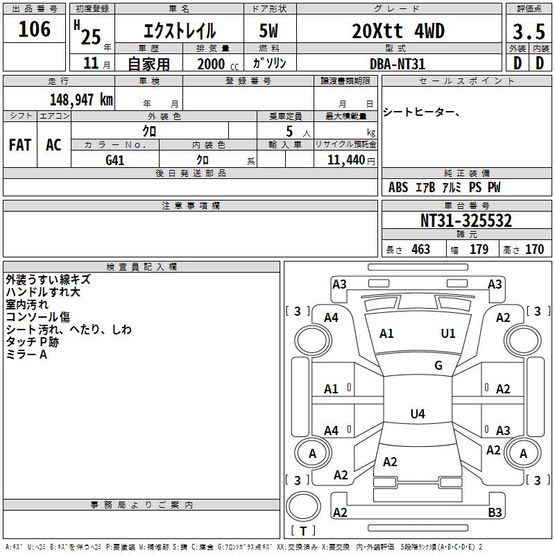 | 20S | DBA-NT31 | MR20DE | Full-time 4WD | CVT | 1997cc | 137ps(101kW)/5200rpm | AИ-92 | 2 190 300 |