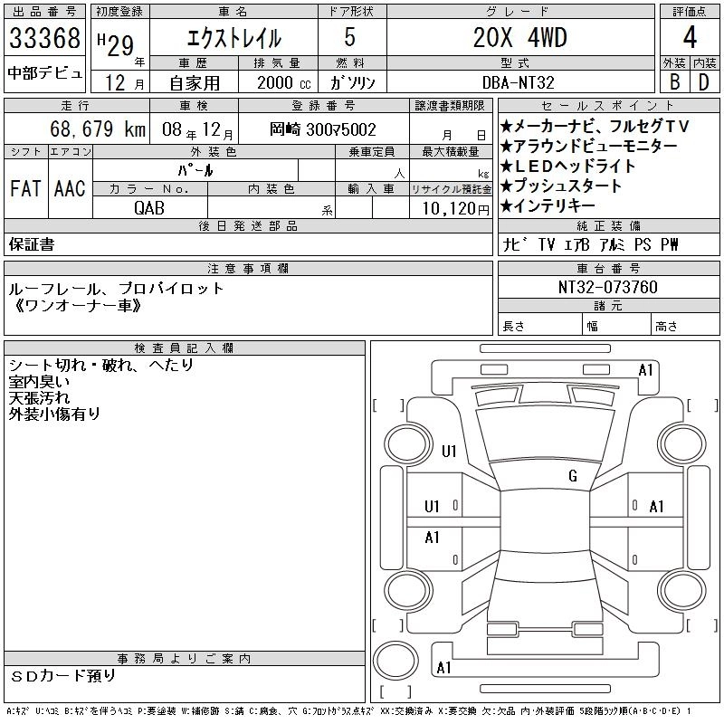 | MODE PREMIER I HIGH CONTRAST INTERIOR | DBA-NT32 | MR20DD | Full-time 4WD | CVT | 1997cc | 147ps(108kW)/6000rpm | AИ-92 | 3 565 080 | |