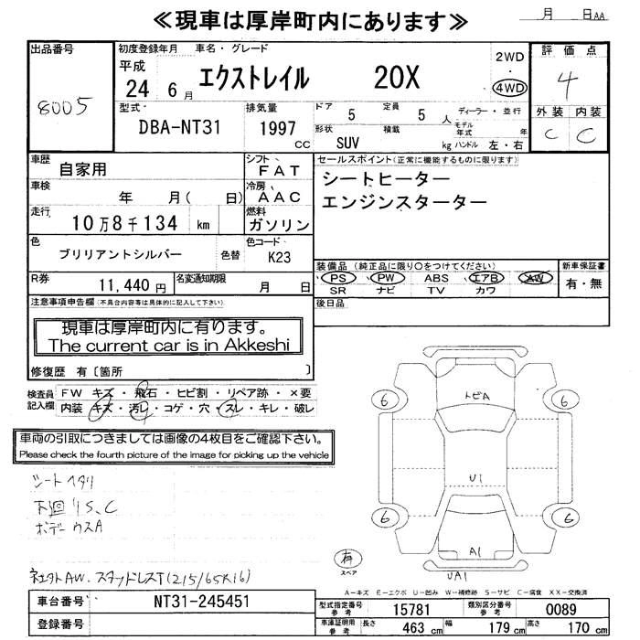 | 20S | DBA-NT31 | MR20DE | Full-time 4WD | CVT | 1997cc | 137ps(101kW)/5200rpm | AИ-92 | 2 190 300 |