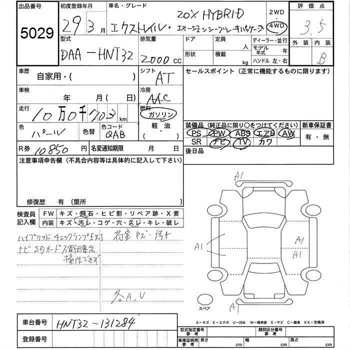| 20X HYBRID | DAA-HNT32 | MR20DD | Full-time 4WD | CVT | 1997cc | 147ps(108kW)/6000rpm | AИ-92 | 3 098 520 | |