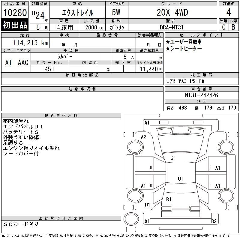 | 20S | DBA-NT31 | MR20DE | Full-time 4WD | CVT | 1997cc | 137ps(101kW)/5200rpm | AИ-92 | 2 190 300 |