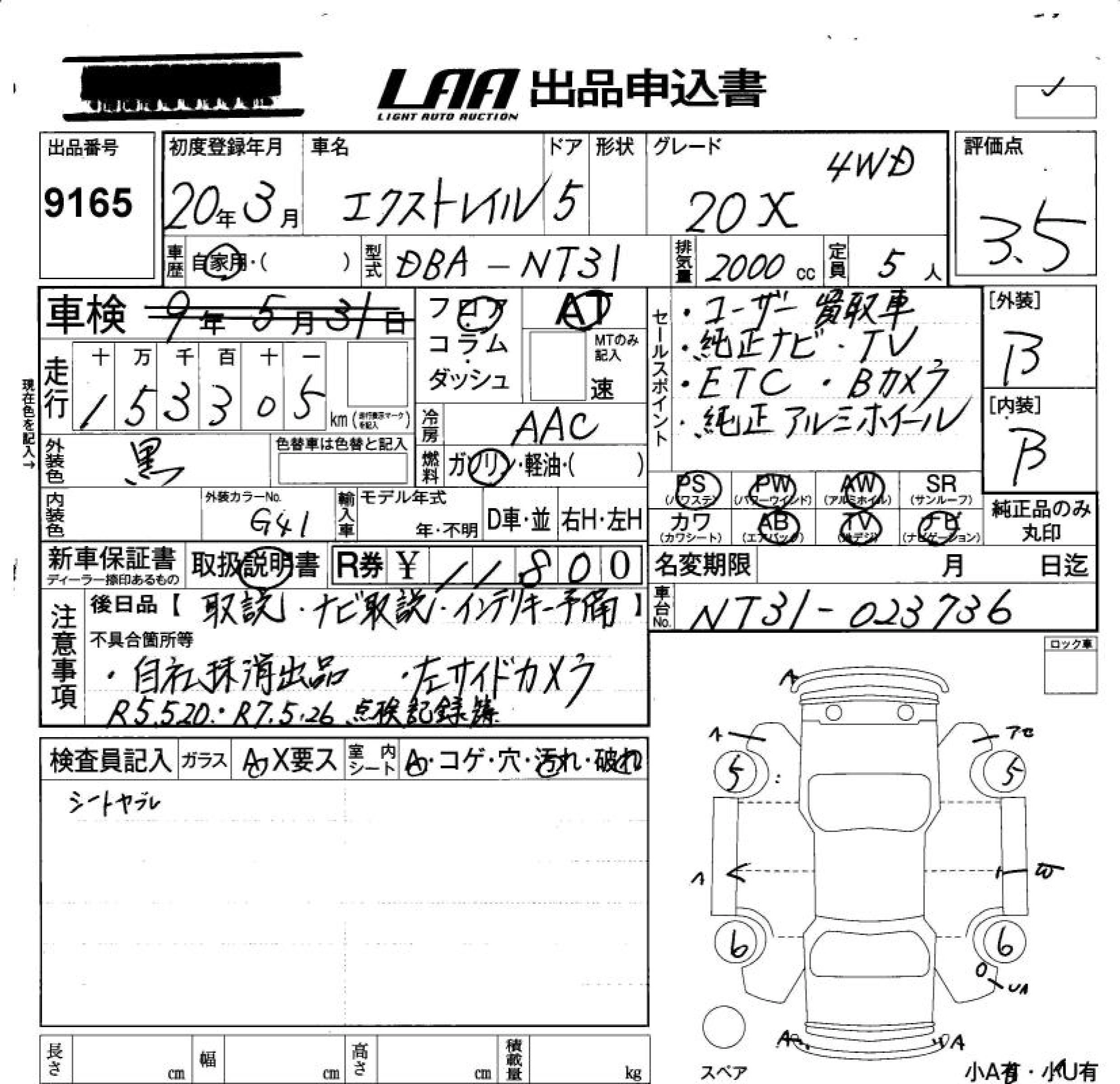 | 20S | DBA-NT31 | MR20DE | Full-time 4WD | CVT | 1997cc | 137ps(101kW)/5200rpm | AИ-92 | 2 227 050 | |