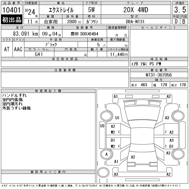 | 20S | DBA-NT31 | MR20DE | Full-time 4WD | CVT | 1997cc | 137ps(101kW)/5200rpm | AИ-92 | 2 190 300 |