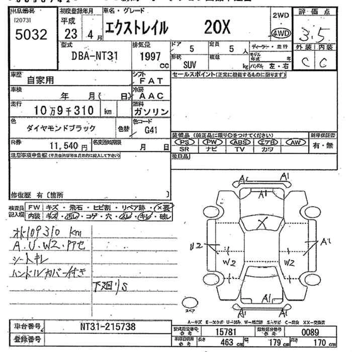 | 20XT | DBA-T31 | MR20DE | FF | CVT | 1997cc | 137ps(101kW)/5200rpm | AИ-92 | 2 339 400 |