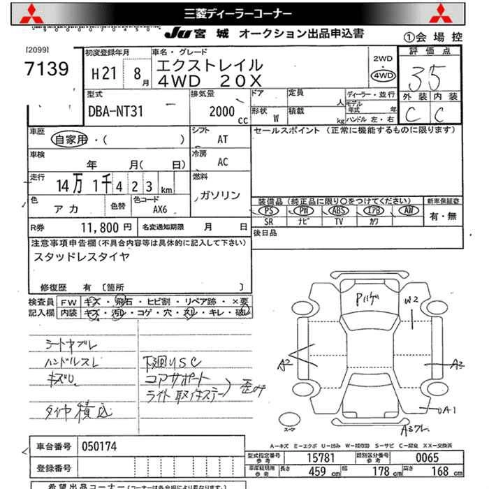 | DRIVING GEAR | DBA-NT31 | MR20DE | Full-time 4WD | CVT | 1997cc | 137ps(101kW)/5200rpm | AИ-92 | 2 425 500 | |