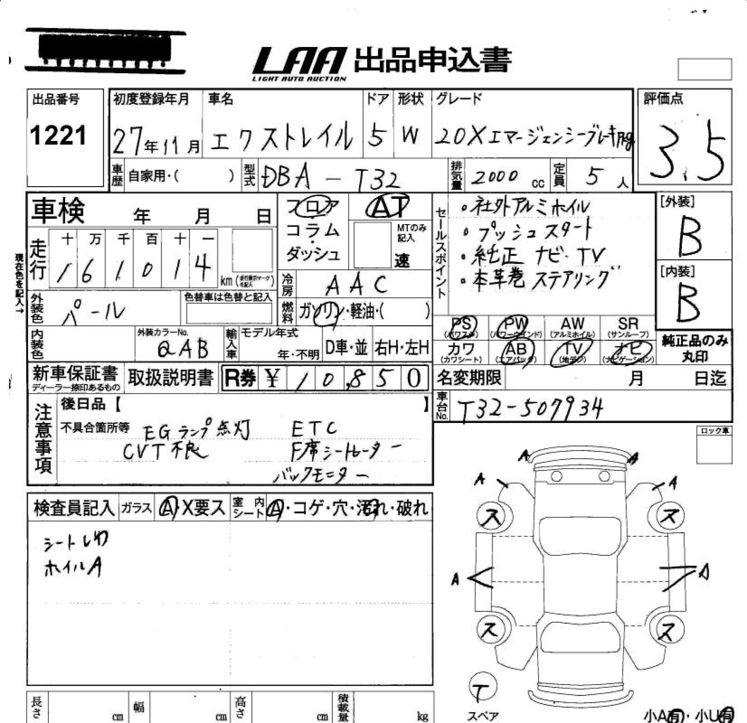 | MODE PREMIER EMERGENCY BRAKE PACKAGE | DBA-NT32 | MR20DD | Full-time 4WD | CVT | 1997cc | 147ps(108kW)/6000rpm | AИ-92 | 3 063 960 | |